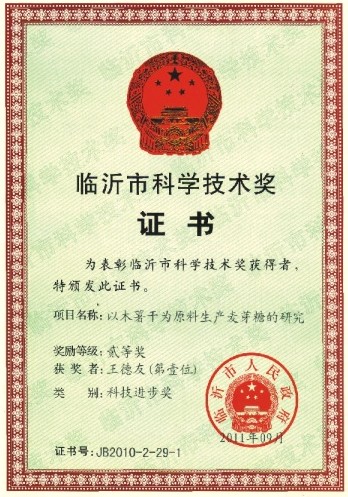 日前,集團(tuán)自主開發(fā)的《以木薯干為原料生產(chǎn)麥芽糖的研究》項(xiàng)目獲2011年度臨沂市科技進(jìn)步二等獎(jiǎng)。