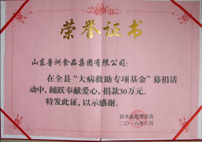 魯洲集團(tuán)參加了此次捐款活動(dòng),捐款30萬(wàn)元,助力我縣精準(zhǔn)扶貧,為更多因病致貧、因病返貧及因病不能脫貧的家庭奉獻(xiàn)愛(ài)心。